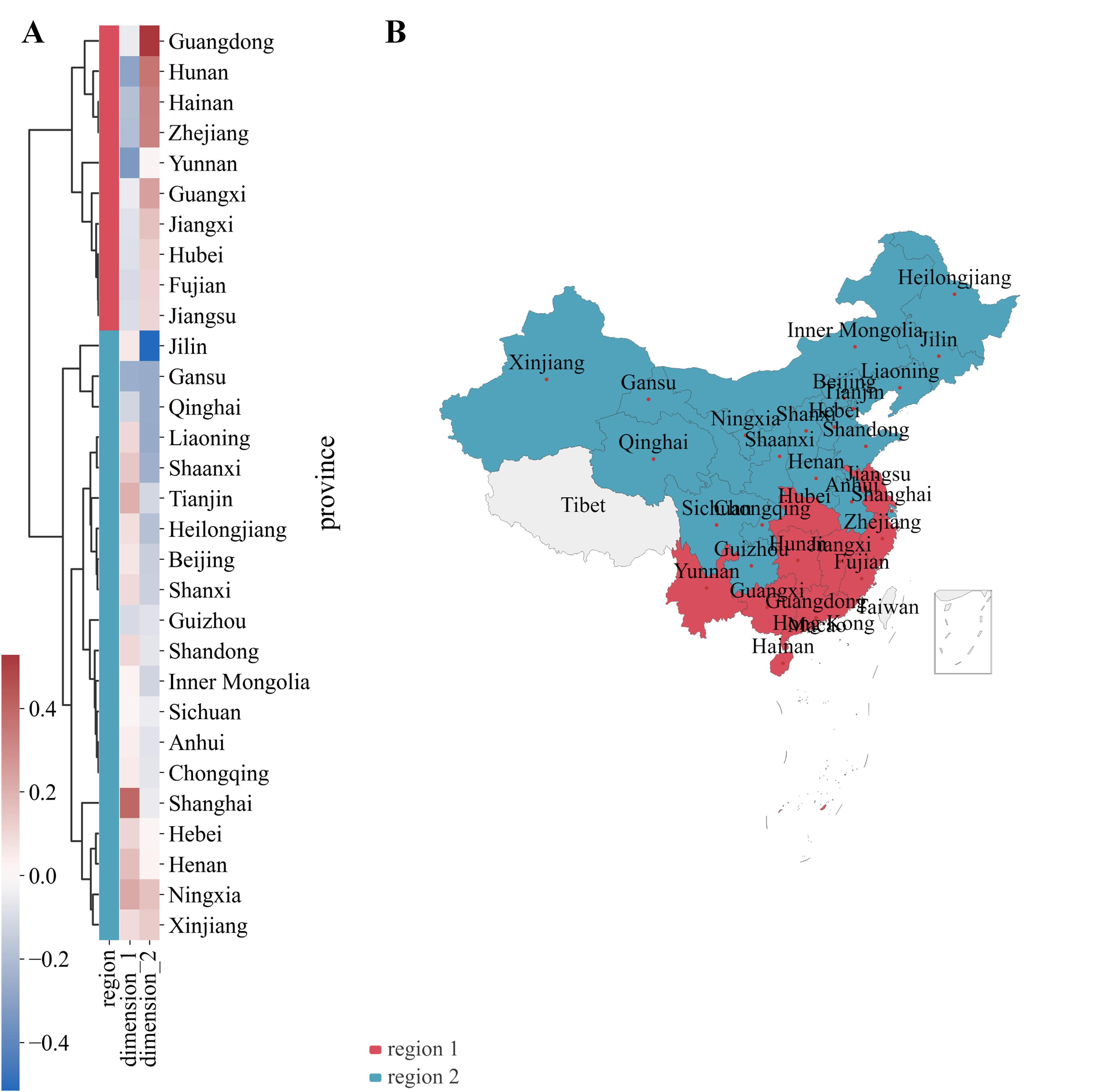 This Project is my master's thesis. In this project, my major task is to measure the impact of scientific mobility on the extent of the changes in their research interests. In one chapter, we apply embedding techniques to represent institutions in a low-dimensional space based on the scientists' trajectories extracted from their publications. The following pictures reveal the geographical stratification of China's provinces. This content is also in my publicationHe, Y., Huang, Y., Tian, C., **ang, S., & Ma, Y. (2024). Neural embeddings of scientific mobility reveal the stratification of institutions in China. Information Processing & Management, 61(3), 103702.